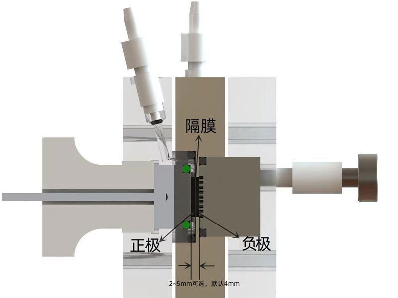1. The distance between the positive and negative electrodes of the device can be as small as 2mm (with a diaphragm in the middle), which greatly reduces the resistance and does not require an electrochemical workstation with high tank pressure. The general workstation can perform large current tests. 2. Use stainless steel contact electrode for the flow channel end, and use graphite gold-plated metal for the electrode end. Compared with the traditional use of copper tape conductive, conductive stability has been greatly improved. The reference electrode is directly inserted into the liquid inlet channel to prevent bubble interference. The counter electrode can be either metal sheet or reticulated or foamed, which does not affect the sealing effect of the device. 3. The electrode and diaphragm of the device are installed with groove structure. The electrode and diaphragm cut in advance according to the specifications are put into the groove respectively, and the sealing and conductive effects can be achieved by tightening, thus improving the integrity of the installation. The overall structure of the device is simple and easy to operate, reducing the uncertainty of operation; this structure avoids leakage, non-insulation or poor conductivity. |
